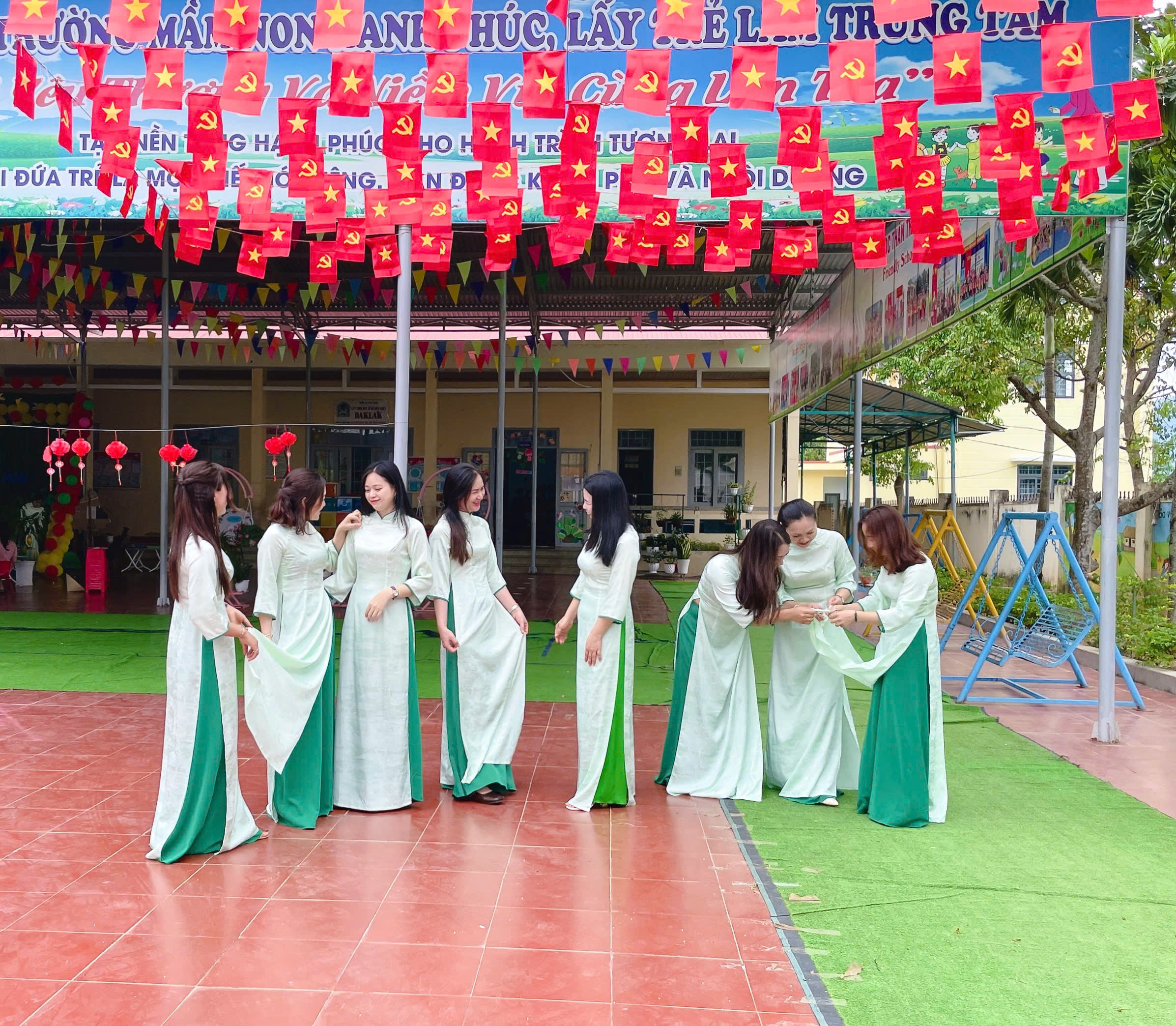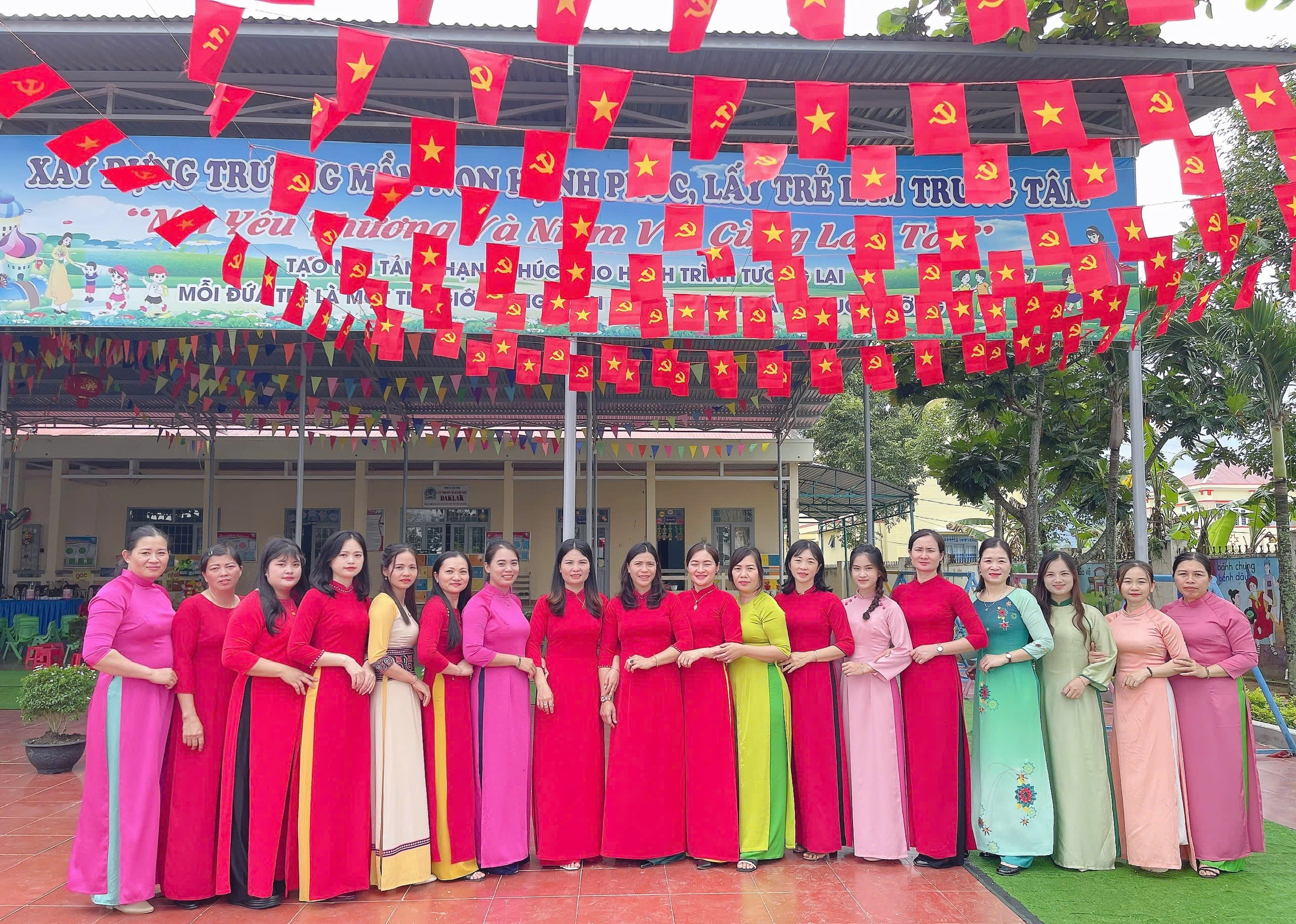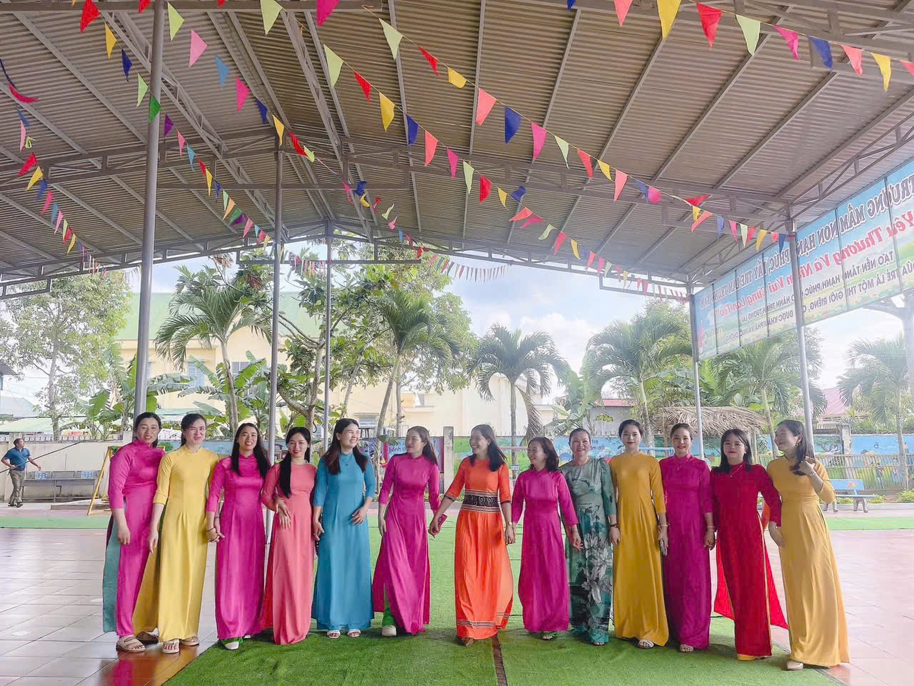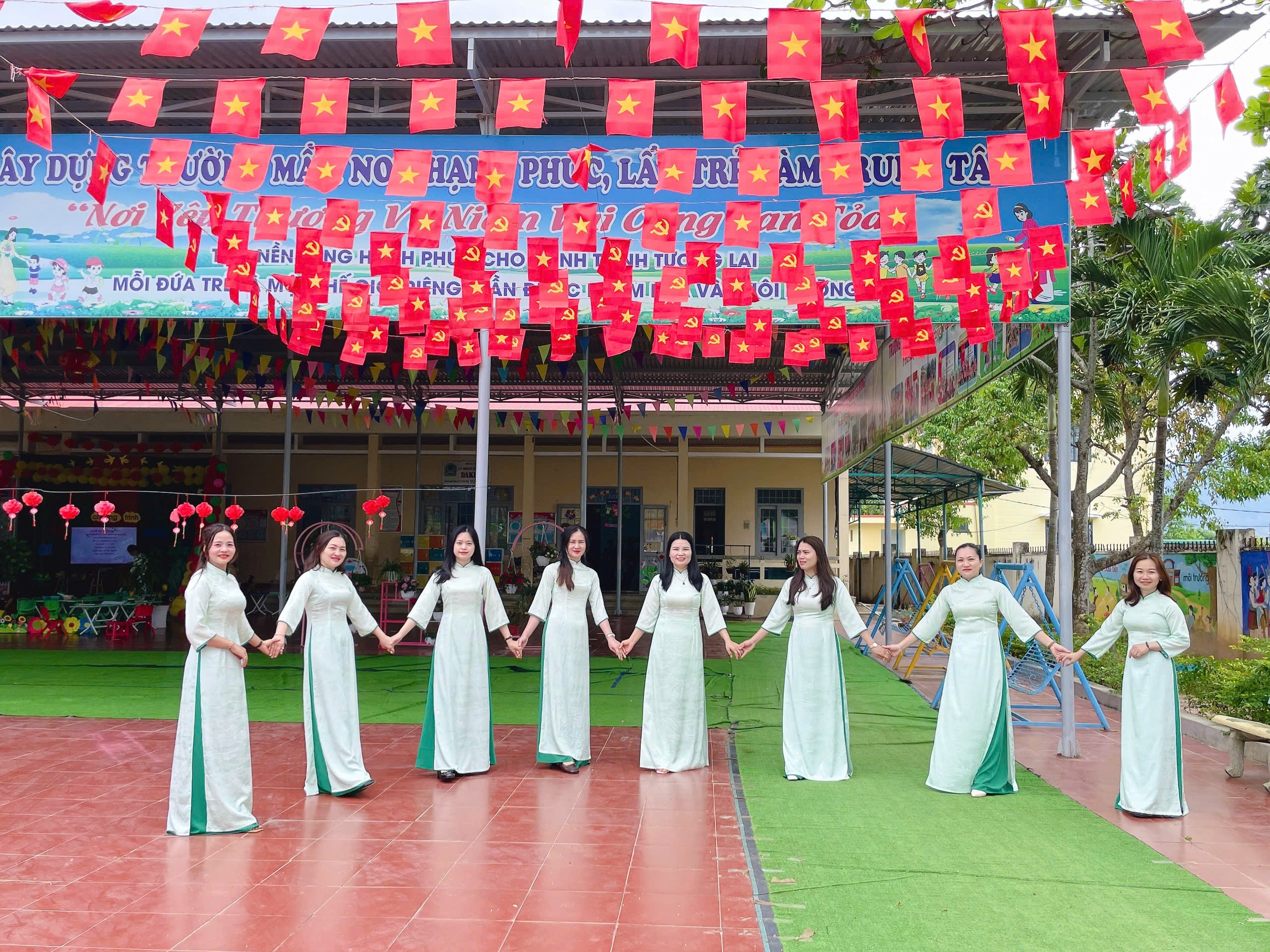 Nhằm tiếp tục tôn vinh vẻ đẹp áo dài Việt Nam, lan toả hình ảnh người phụ nữ Việt Nam duyên dáng, thanh lịch và hướng tới kỷ niệm 116 năm Ngày Quốc tế Phụ nữ (08/3/1910 – 08/3/2026) và 1986 năm Khởi nghĩa Hai Bà Trưng, chào mừng cuộc bầu cử đại biểu Quốc hội khóa XVI và đại biểu Hội đồng nhân dân các cấp nhiệm kỳ 2026-2031 tập thể Cán bộ Giáo viên Trường Mn Tuổi Hồng hưởng ứng “Tuần lễ Áo dài”.